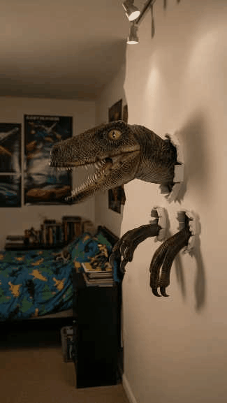 Bring the thrilling world of the Jurassic right into your home! Our 3D Dinosaur Wall Decor Set creates an unforgettable, dramatic scene with a realistic raptor bursting through the wall.