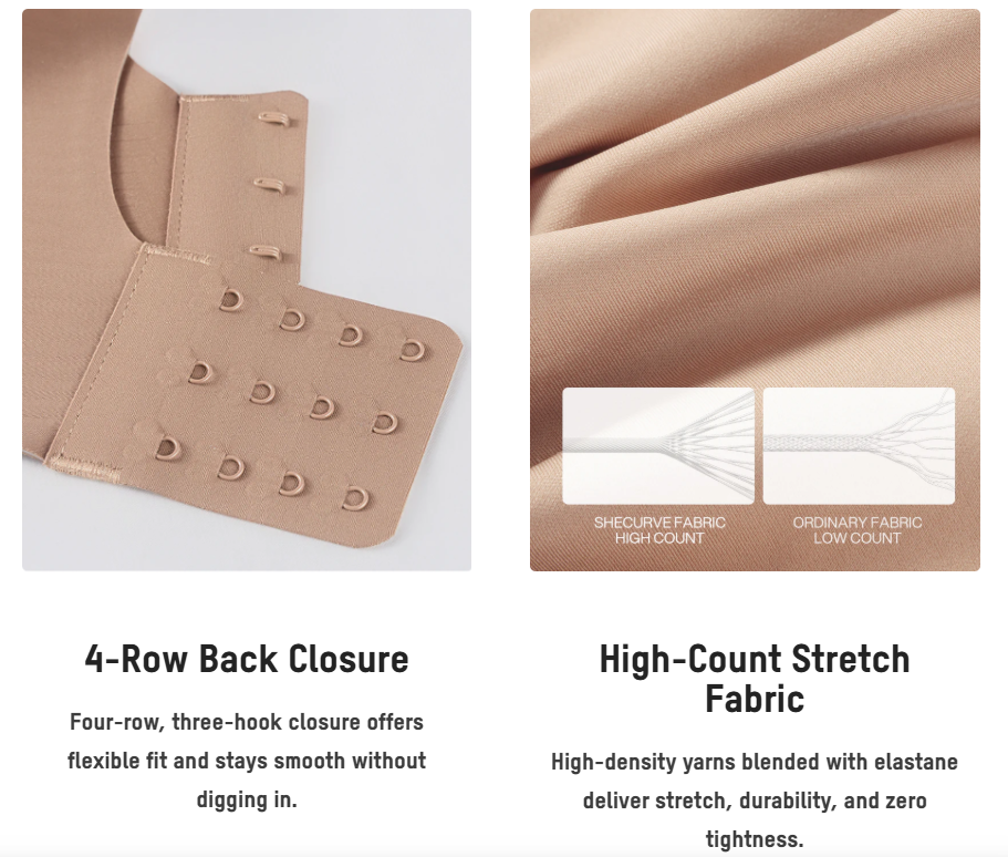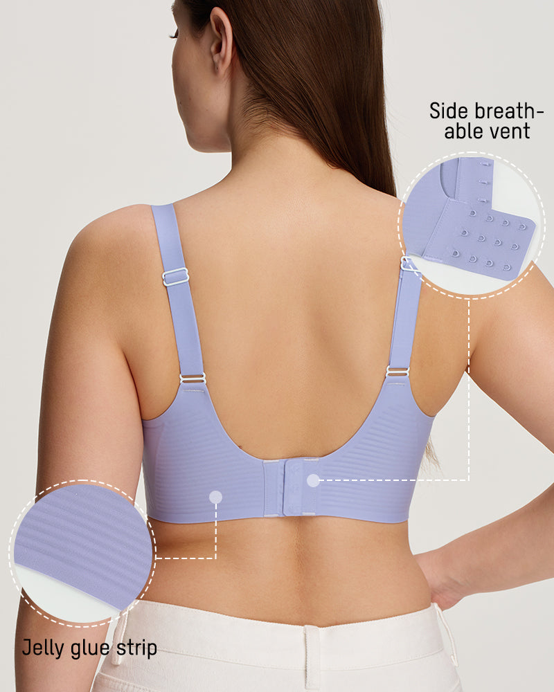 Flexible jelly support strips along the back provide lift and stability without stiffness. They help lift up, absorb bounce, draw inward, and support from below, smoothing the back while keeping everything comfortably in place.