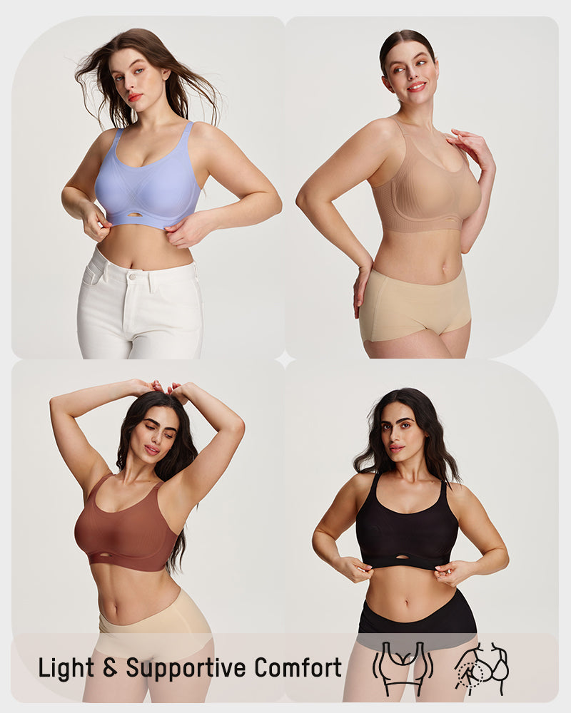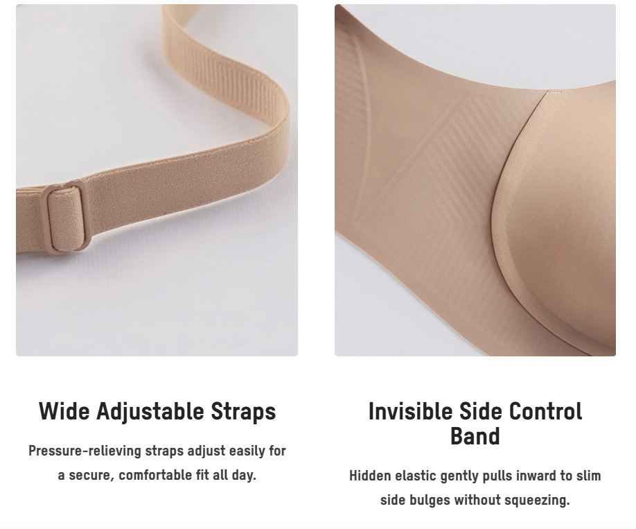 Designed with an ∞ wrap sculpting design and 4D lift lines, this bra gently lifts and shapes from every angle. The W-shaped wire-free support offers secure hold for fuller busts—naturally rounded, perky, and never stiff or restrictive.